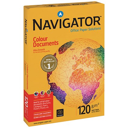 Navigator A4 Colour Documents Paper, White, 120gsm, Ream (250 Sheets)